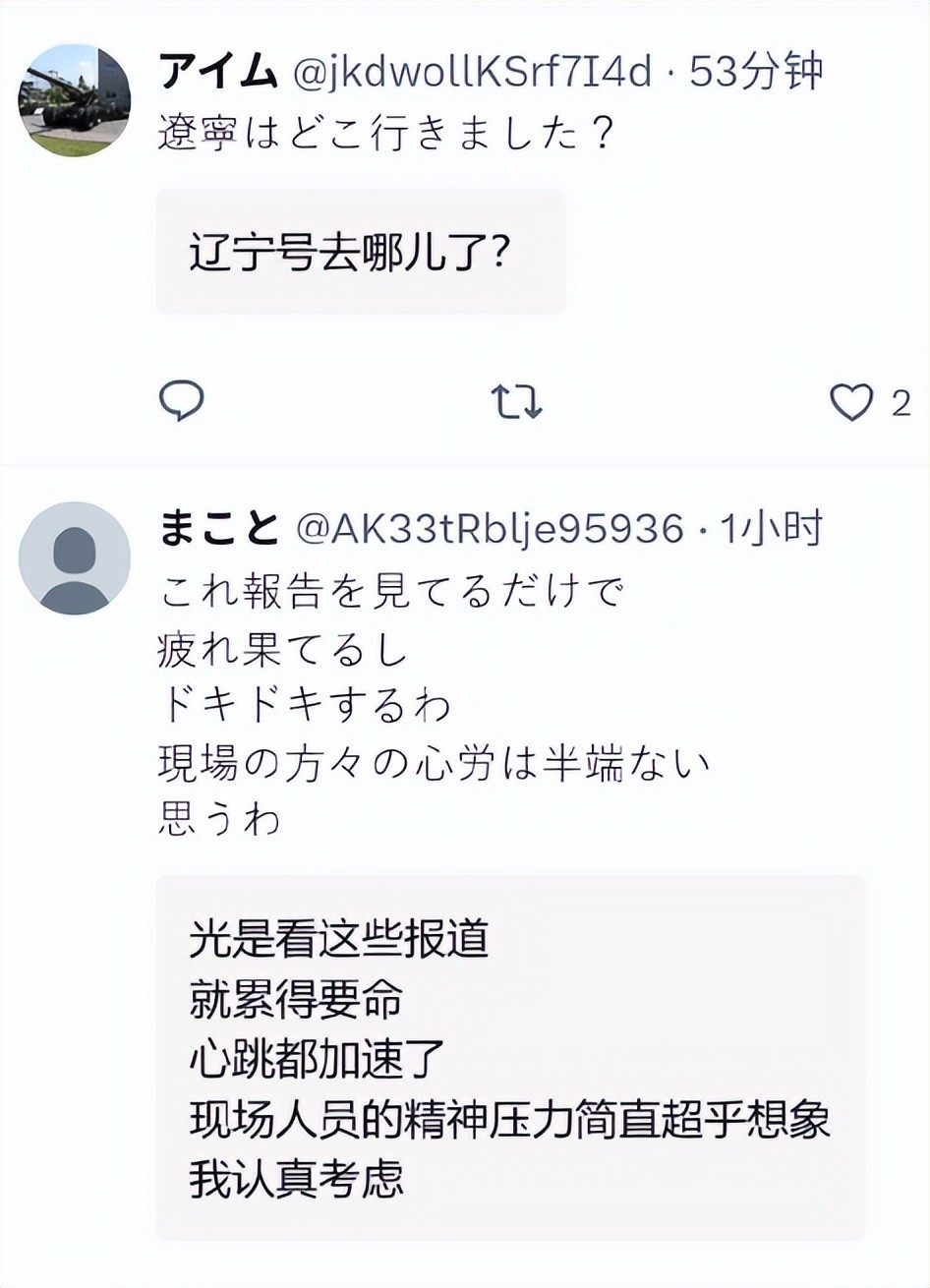 就在日本炒作的时候,辽宁舰的动向突然成了“谜”。最近日本又地震了,日本官方光顾着发各种救灾避险消息去了,迟迟不更新大家关注的我海军动向消息。在沉默了48小时后,日本自卫队官方终于在9日更新了消息,称又有2艘054A型护卫舰穿越琉球岛和宫古岛之间的海域,向东南行进,驶向太平洋,从航迹看可能是与辽宁舰汇合了。日本方面又是派出舰机收集情报,而评论的日本人都在问辽宁号的去向。怎么连护卫舰的动向都报了,就是不肯报辽宁舰的动向?目前日本两架P-1反潜巡逻机正在东京湾附近海域对海搜索转圈,同时美军MQ-4C海神无人机也在第一岛链附近活动。